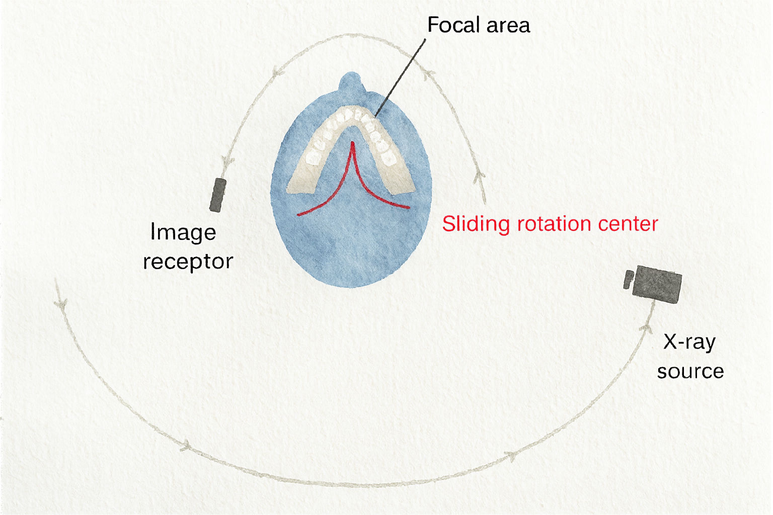 사람의 머리는 구형이기 때문에, 엑스레이 장치가 사람을 중심으로 회전하면서 펼쳐진 평면의 치과 파노라마 사진을 촬영하게 됩니다
